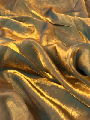 Blue & Gold Two Tone Plain Soft Fendi Silk Fabric