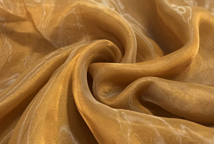 Organza is a sheer, lightweight, and crisp fabric also known for its delicate appearance and elegant drape.