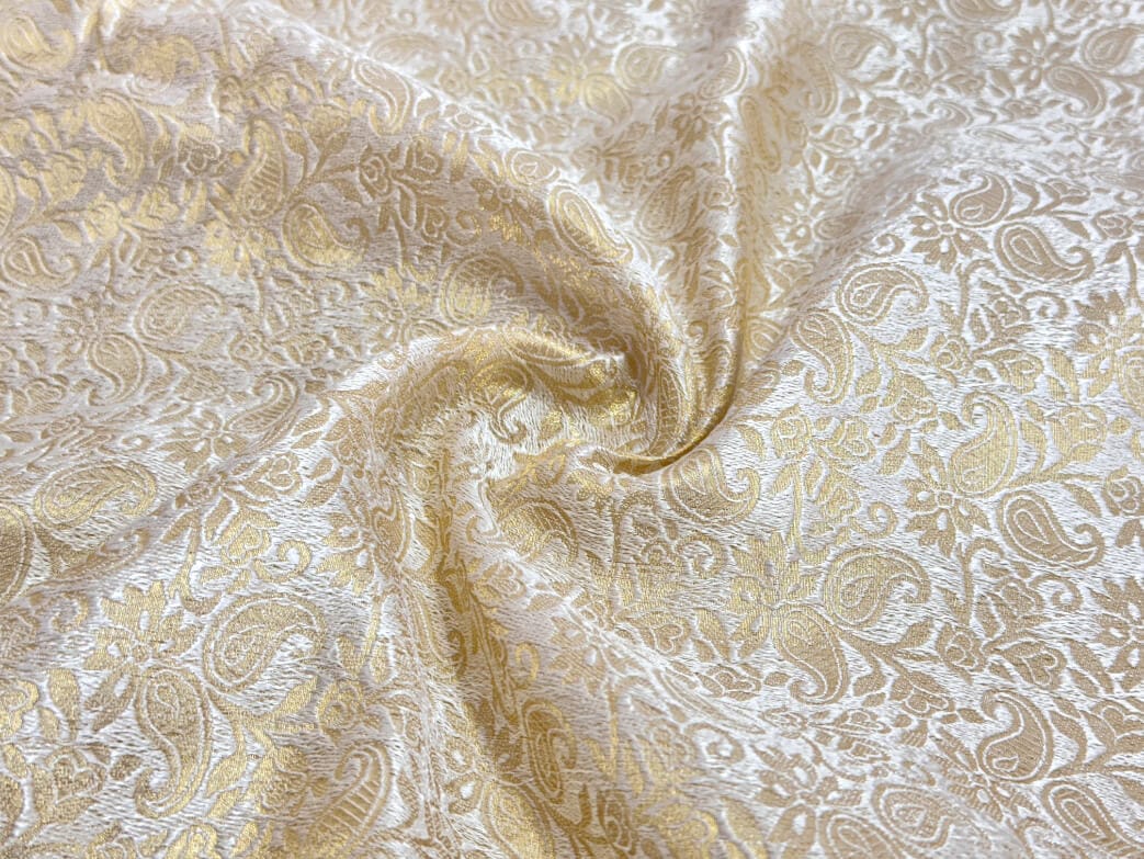 Ivory Paisley Semi Banarasi Brocade Fabic