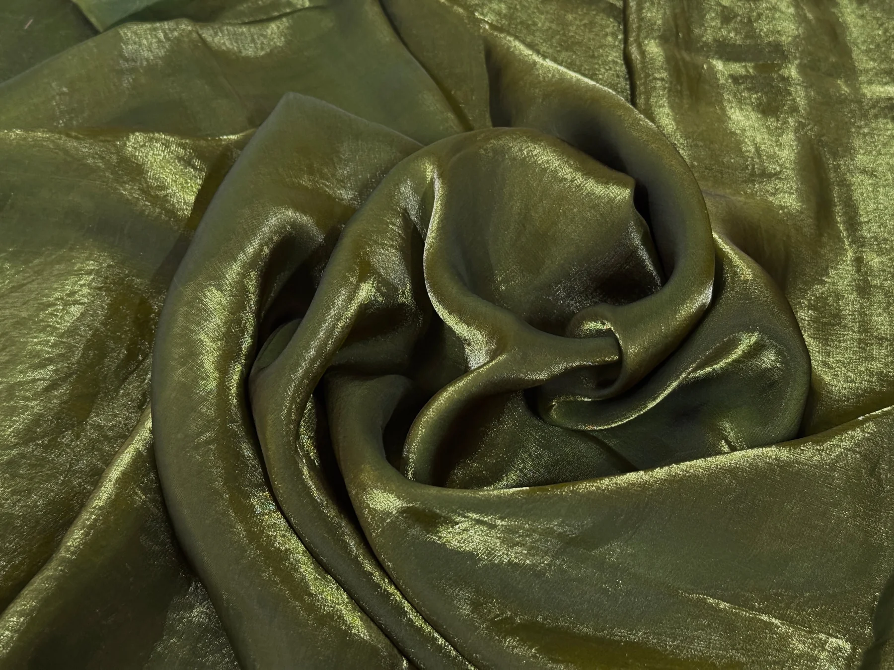 Olive Green Plain Soft Fendi Silk Fabric