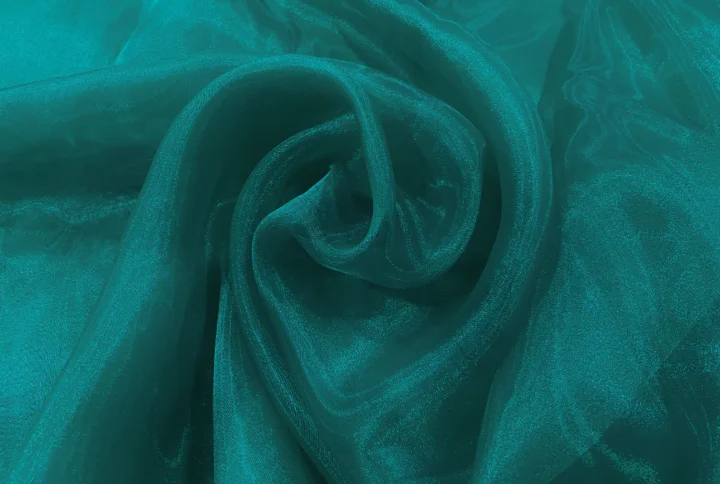 Organza is a sheer, lightweight, and crisp fabric also known for its delicate appearance and elegant drape.